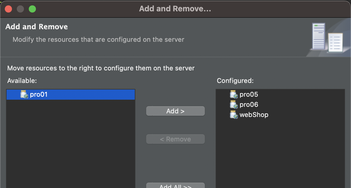 pro01 프로젝트를 선택하여 Add > 클릭하여 추가