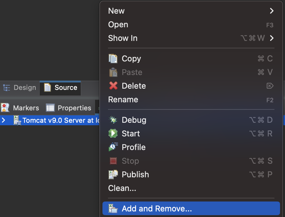 톰캣 서버 우클릭 후 Add and Remove... 클릭