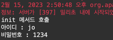 System.out.println("init 메서드 호출");