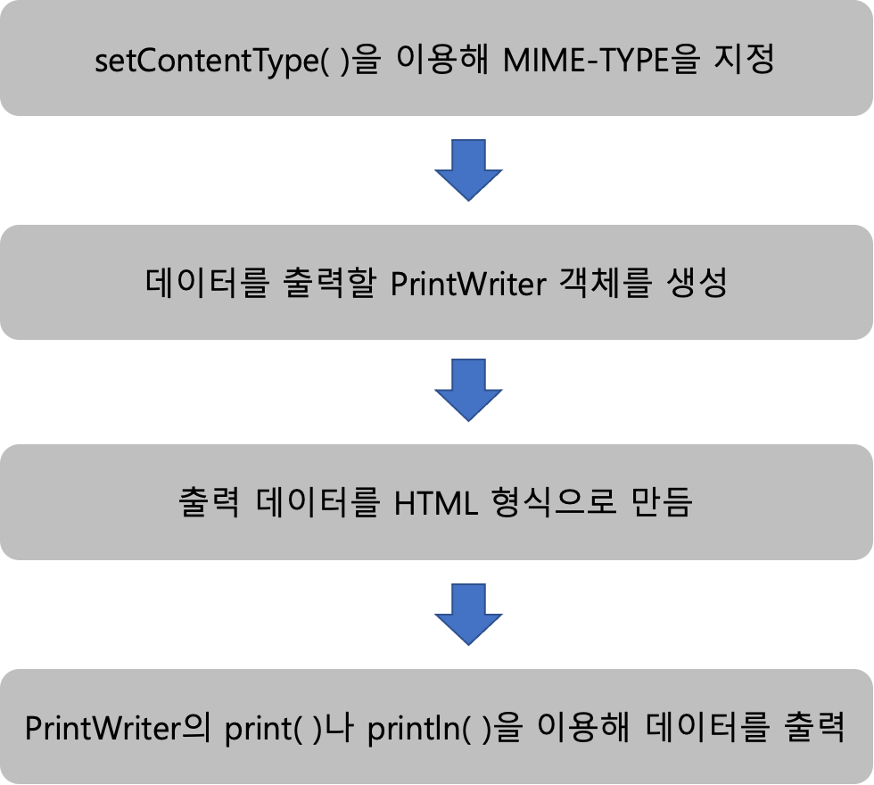 - setContentType( )을 이용해 클라이언트에게 전송할 데이터 종류(MIME-TYPE)를 지정