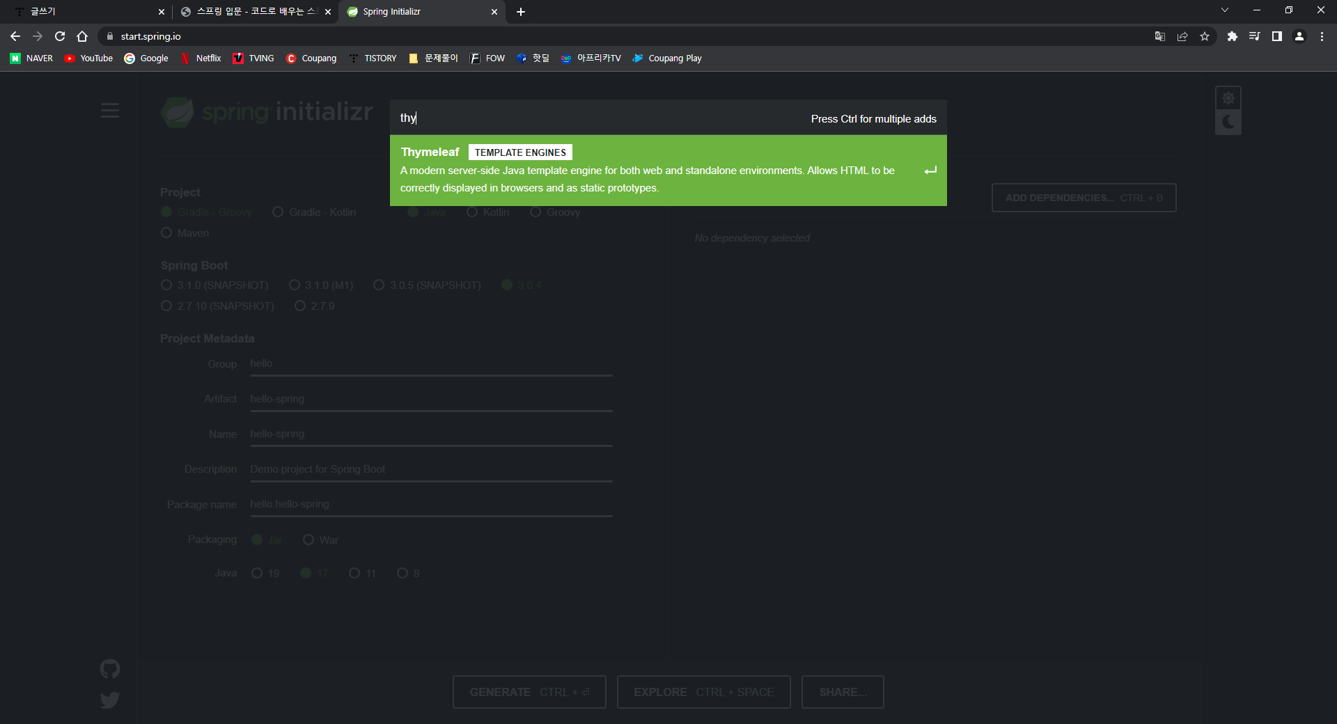 2. Thymeleaf 선택