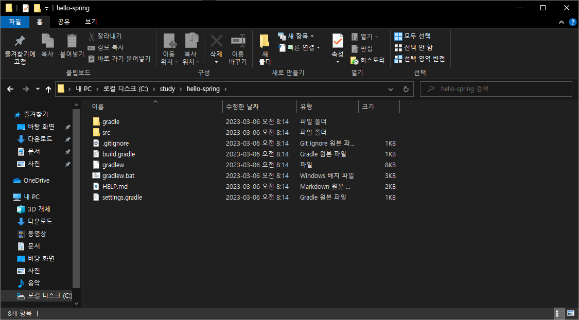 C드라이브 study 폴더 아래에 압축 풀기