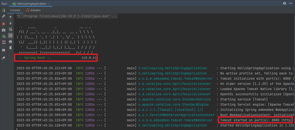 스프링부트 버전과 포트 번호 확인