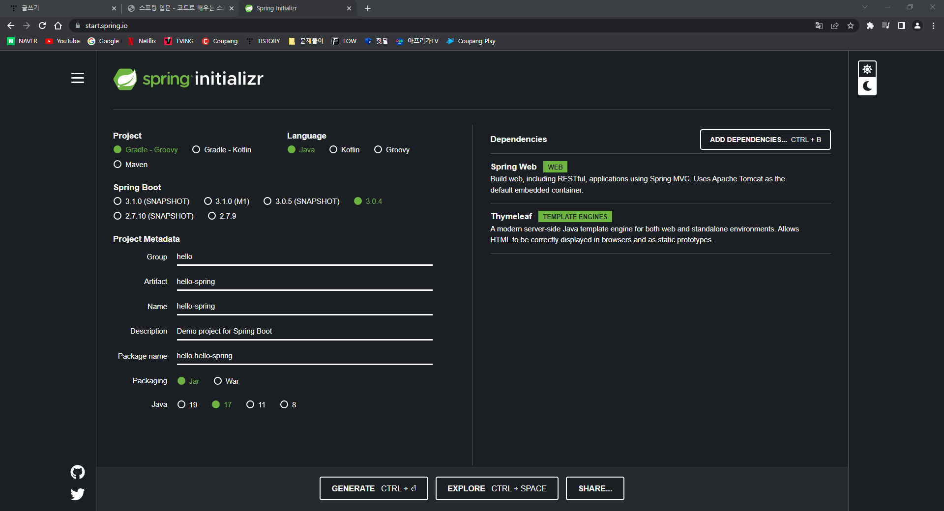 1. Spring Web 선택