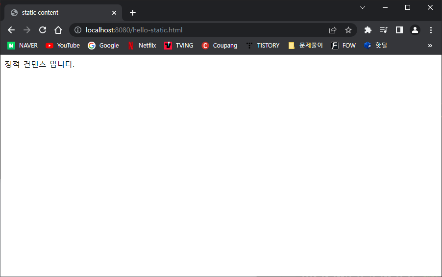서버 시작 후 localhost:8080/hello-static.html 요청 후 결과 확인