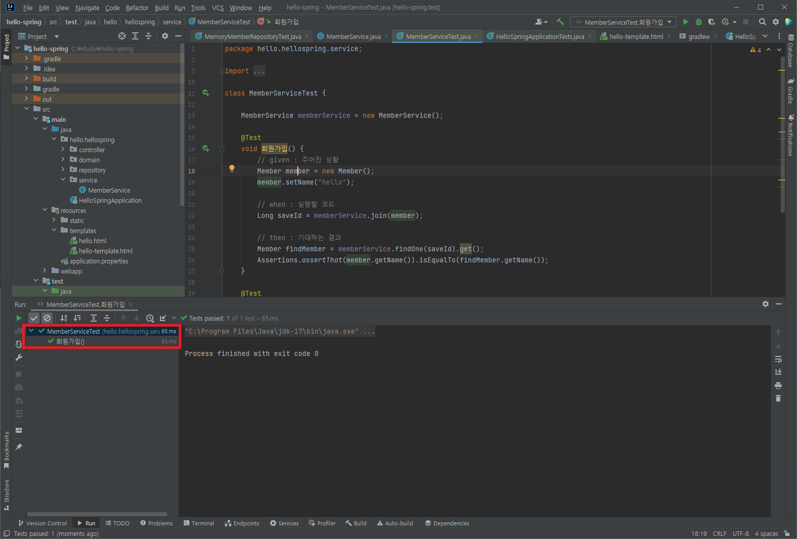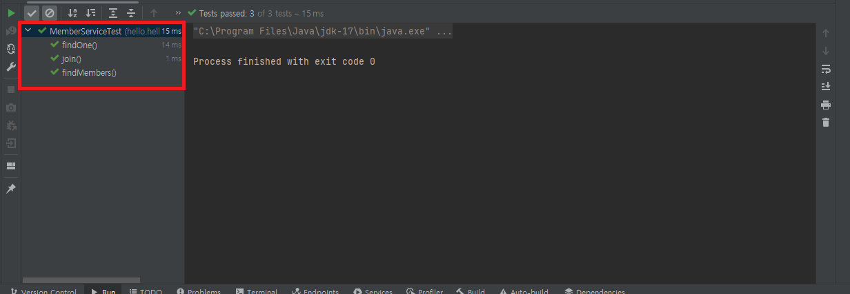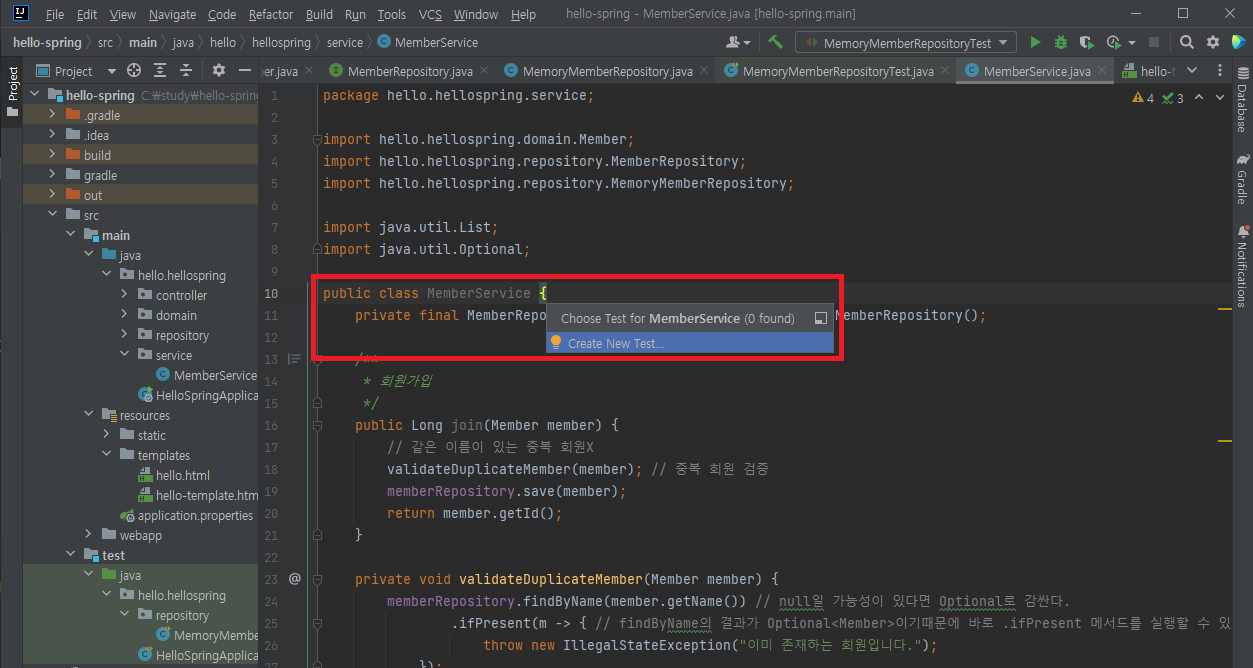 MemberService, MemberServiceTest 클래스 최종 코드