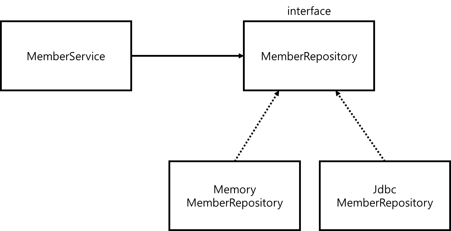 스프링 데이터 JPA가 SpringDataJpaMemberRepository를 보고 스프링 빈을 자동으로 만들어서 객체를 생성해서 스프링 빈에 등록하고, 그걸 Injection을 해서 쓴 것이다.