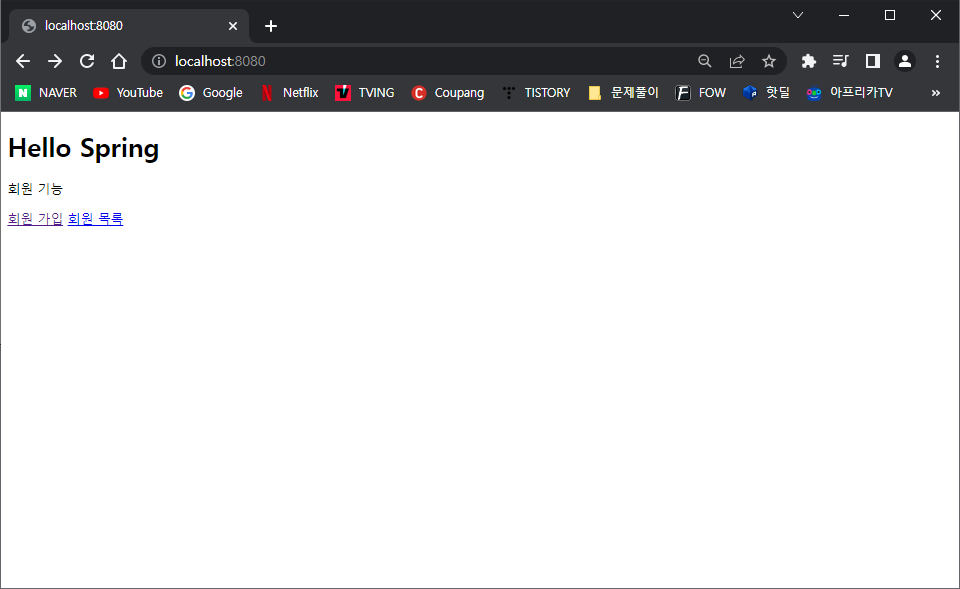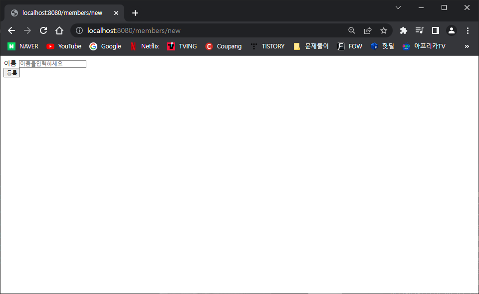 localhost:8080 요청하여 회원가입을 누르면 다음 화면 출력