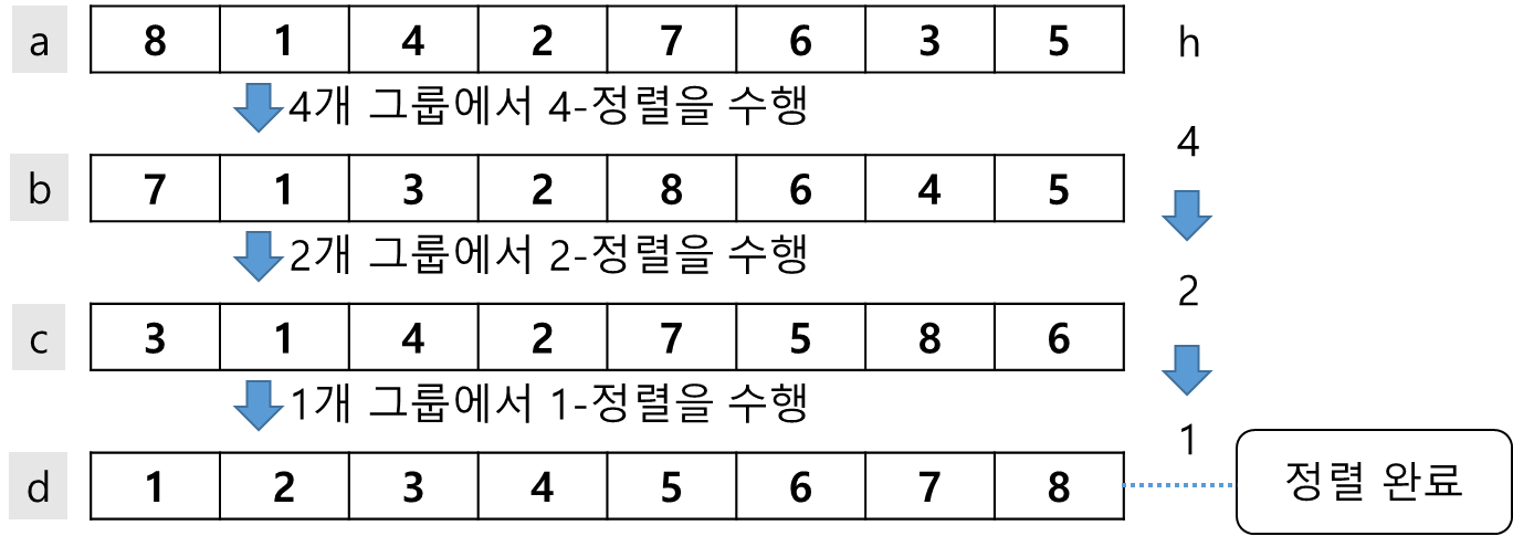 셸 정렬 과정에서 수행하는 각각의 정렬을 h-정렬이라고 한다.