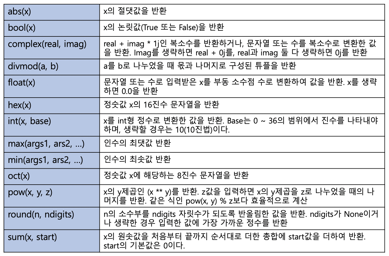 파이썬 내장 함수의 종류