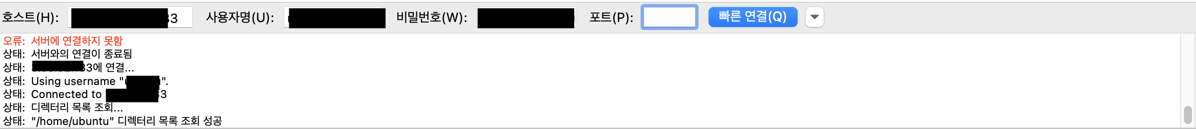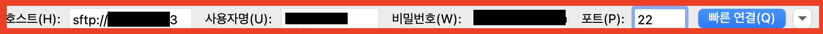 포트에는 방금 추가한 보안 그룹의 FTP 포트를 입력한다(FTP-21번, SFTP-22번).