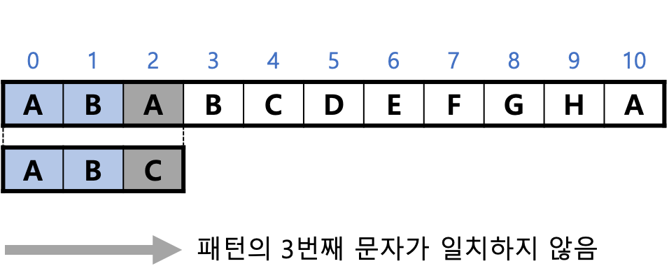 과정 1과 과정 2처럼 문자가 일치하는 동안은 계속 검사하다가 과정 3처럼 일치하지 않는 다른 문자를 만나면 더 이상 검사가 불필요하다고 판단하고 다음 단계로 넘어간다.