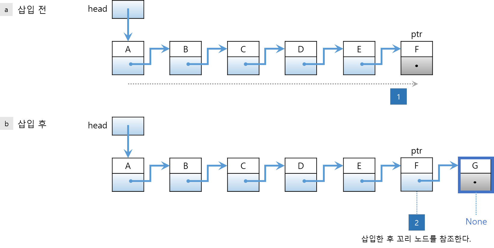 - 꼬리 노드(tail node): 맨 끝에 있는 노드