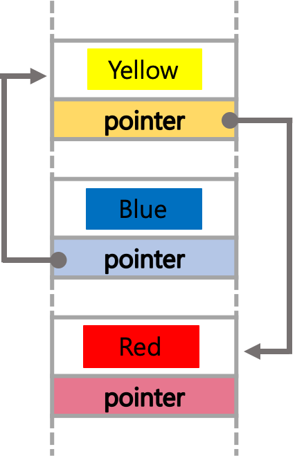 'Red'는 마지막 데이터이므로 'Red'의 포인터는 아무것도 가리키지 않는다.